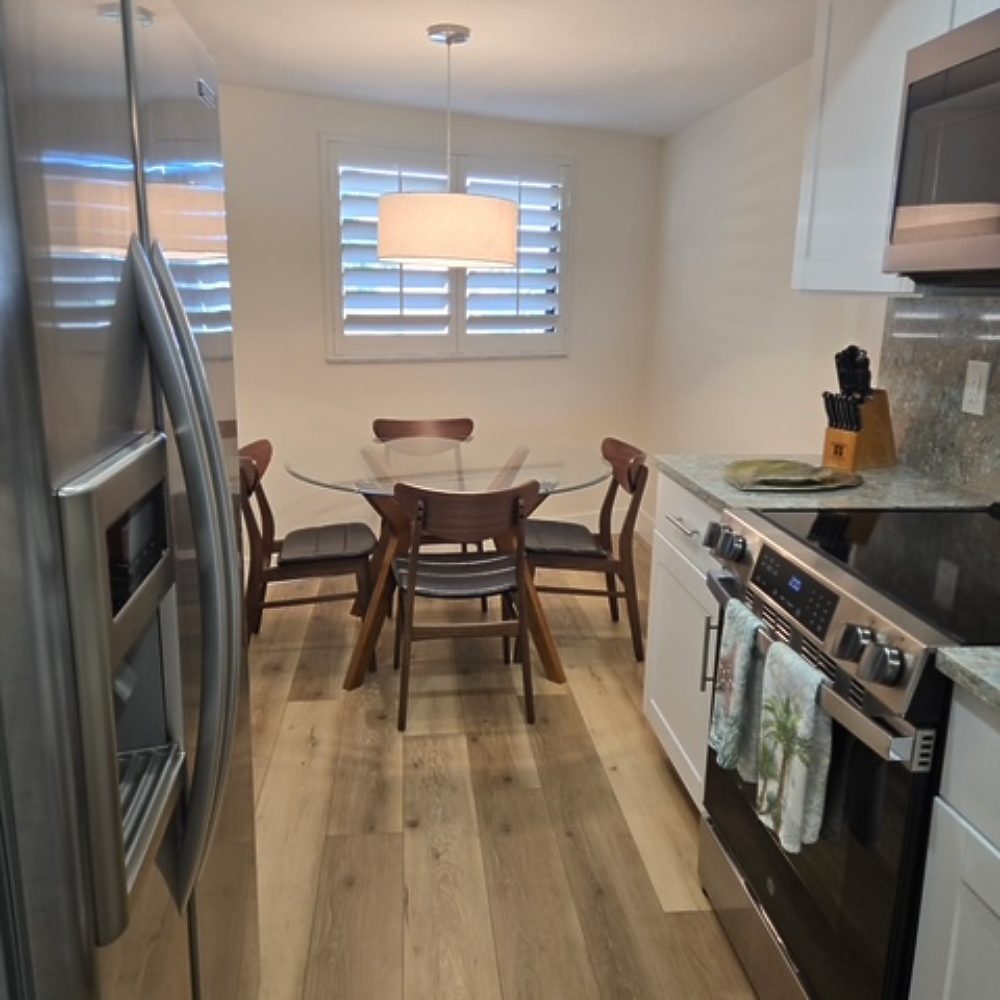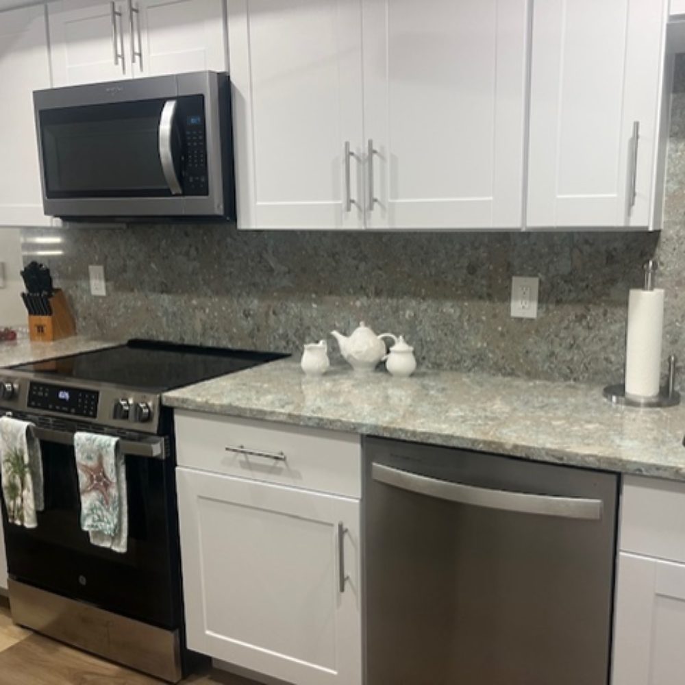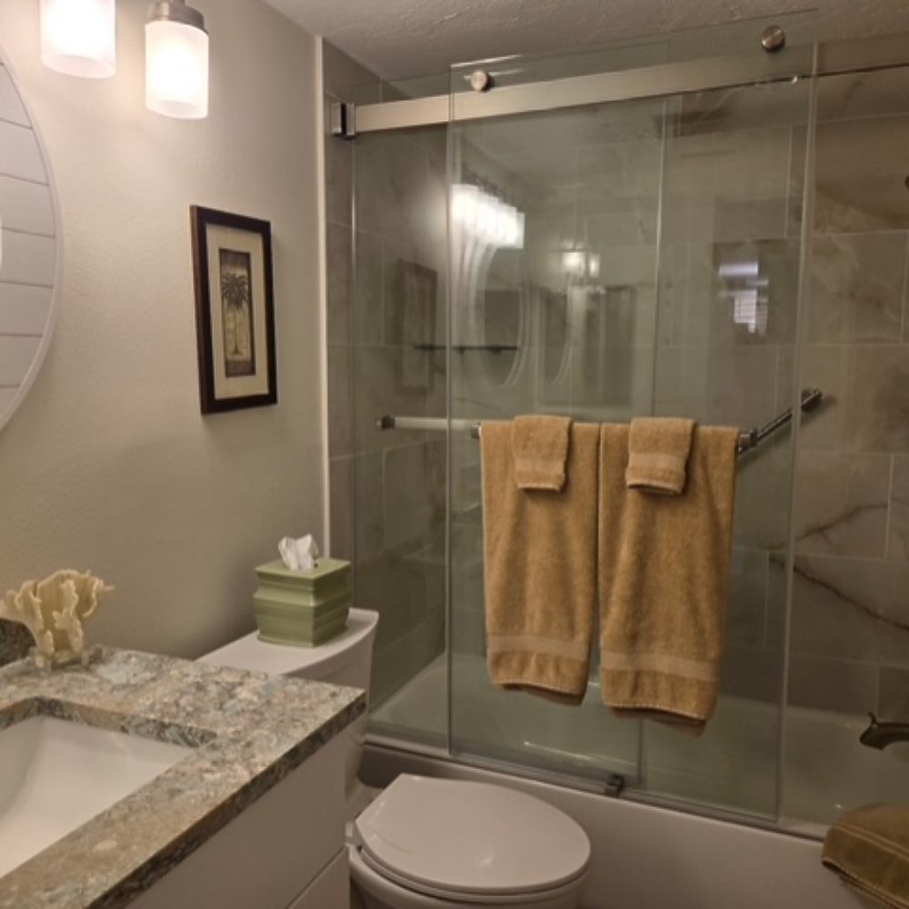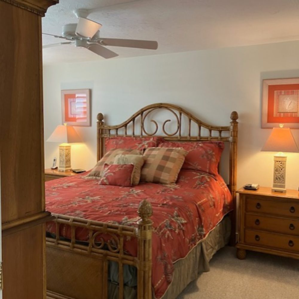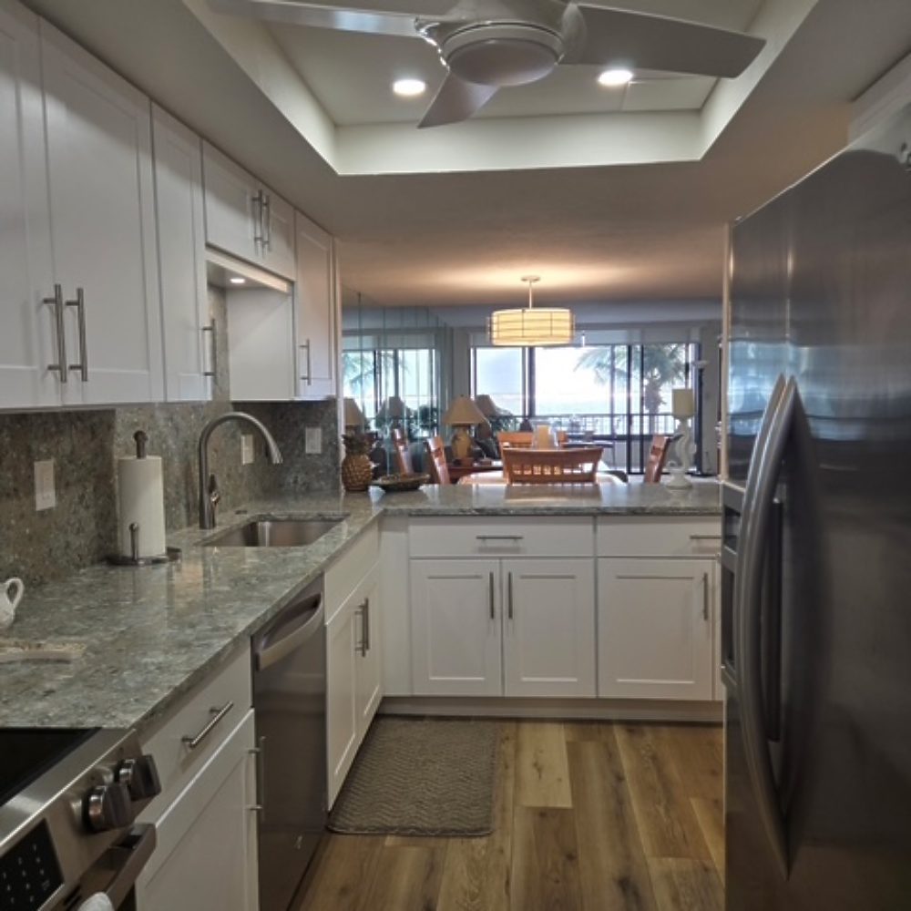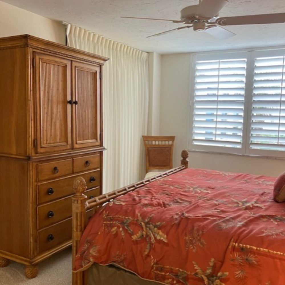 Attractive decorated 1,445 sq ft 4th floor, two bedroom, two bath condo with great views of the Gulf of Mexico and the Island Reef grounds. Living room includes a 46" HD flat screen TV and Blue Ray DVD player. Master suite features a king size bed and 32" flat sceen TV. In the master bath the walk-in shower has a grab bar. Guest bedroom has two twin beds and a flat screen TV. Fully equipped kitchen and a laundry area. Grab bars in master bathroom.