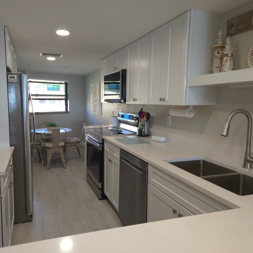 Recently remodeled in 2025, this 2 bedroom 2 bath, 5th floor condo, has one of the best views of the Gulf! Beautiful new Kitchen is fully-equipped with a charming breakfast area off the kitchen area. Master bedroom has a king-size bed. Sliding glass doors lead out to the lanai from the master bedroom. This condo is very light and bright and the closest building to the beach. Come and enjoy the serene atmosphere that Island Reef offers. Make some memories!